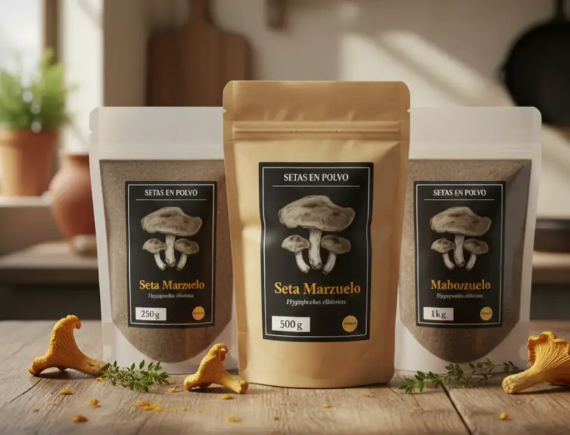 SETAS EN POLVO (250 g / 500 g / 1 kg)** **Ultra aroma • Producto gourmet profesional** Polvo 100% seta pura. Sin mezclas. Ultra aroma para gourmet y hostelería.